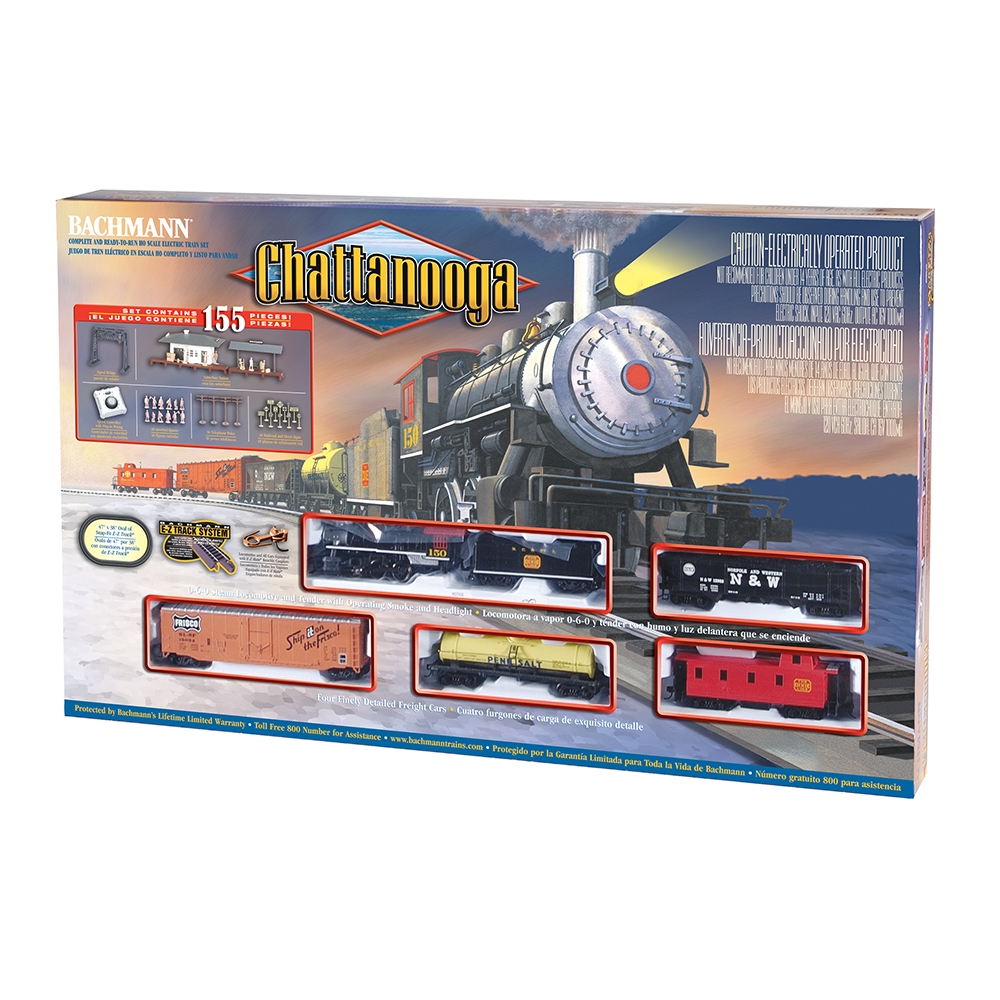 Capturing all the energy and excitement of train travel is the Chattanooga. Named for the famous Nashville, Chattanooga & St. Louis Railroad, this 155-piece set includes all the miniature people, buildings, and structures you'll need to recreate the romance of the steam era.