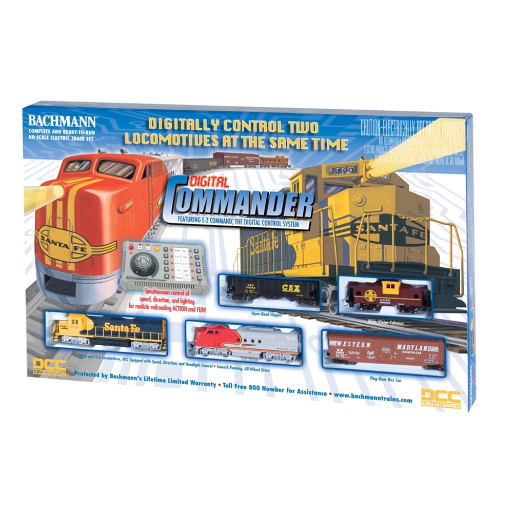 The Digital Commander has everything you need to get started in digital model railroading in one ready-to-run set! It includes our exclusive, easy-to-use E-Z Command digital system that lets you independently control the speed, direction, and lighting of two DCC decoder-equipped locomotives. Take control of your own freight rail empire with the Digital Commander!
