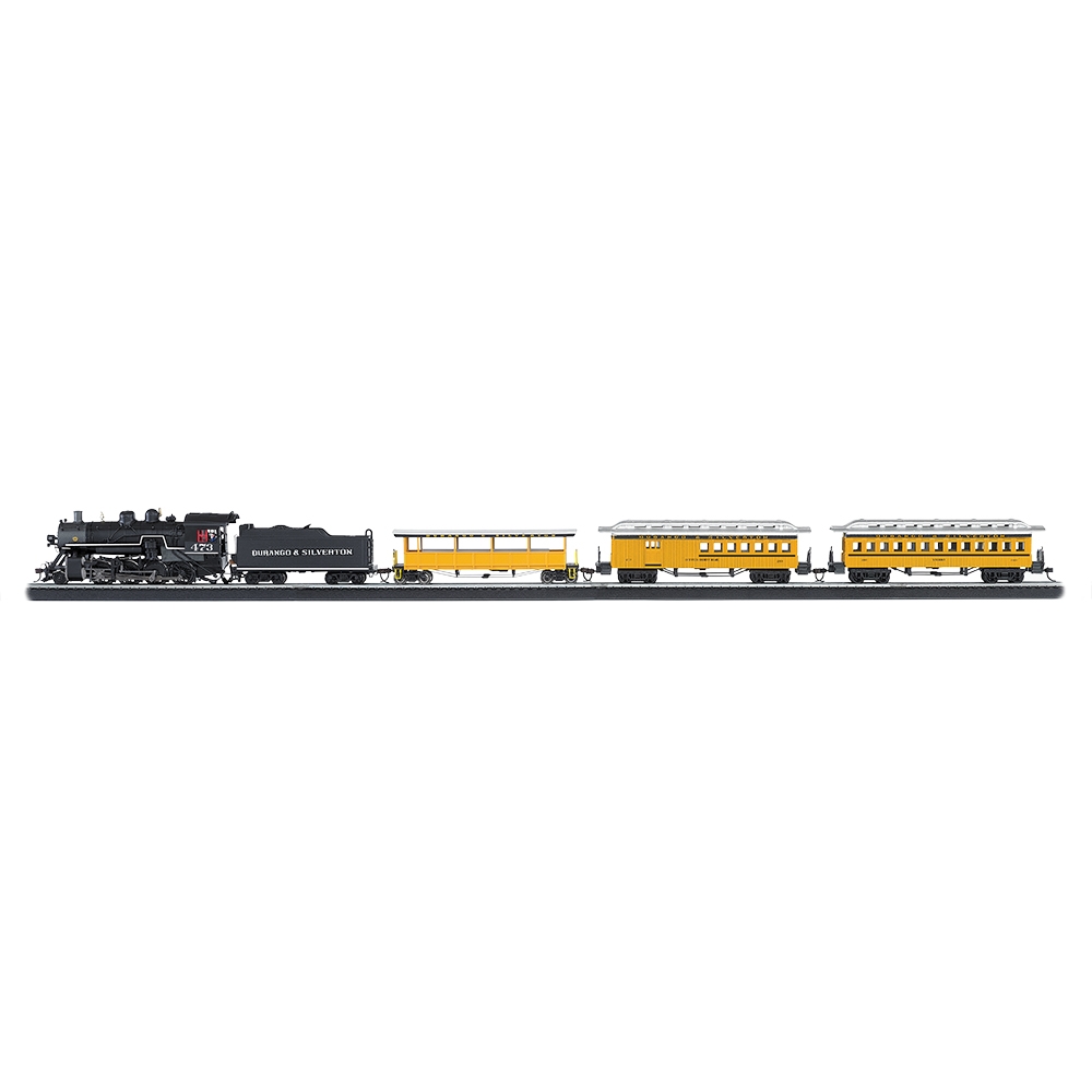 Built originally as a mining line, the scenic value of the Durango & Silverton was quickly recognized in passenger service. After surviving natural disasters, wars, and financial instability, a determined staff (and starring roles in several Hollywood movies) promoted the tourism that ensures the line's survival to this day. Now recognized as a National Historic Landmark and a National Historic Civil Engineering Landmark, the Durango & Silverton continues to provide year-round tourist service. Our Durango & Silverton passenger set comes complete with: