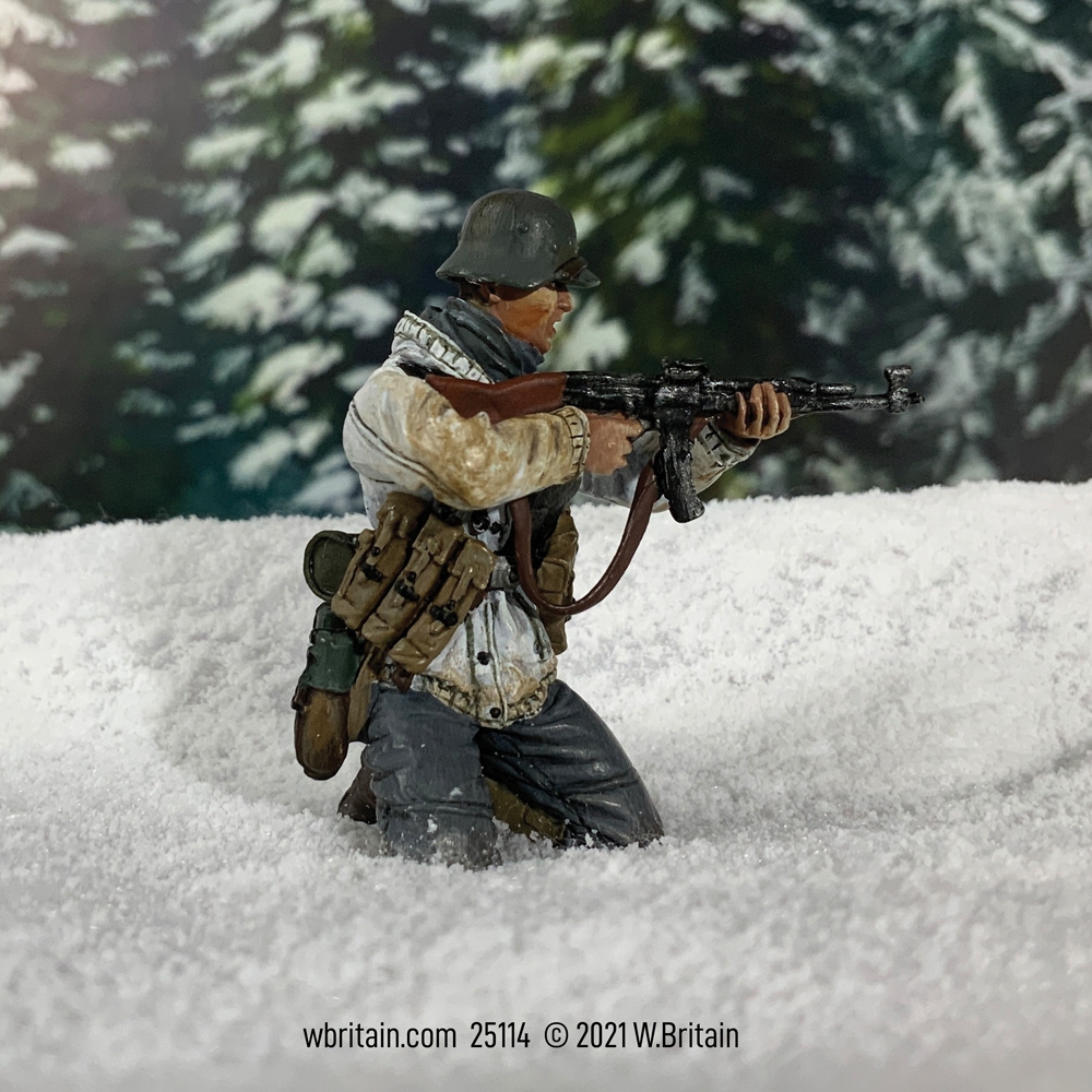 • German Grenadier in Parka Kneeling Firing Stg44, No 3• WWII Collection• Matte finish• 56/58mm hand painted die-cast figure from W Britain