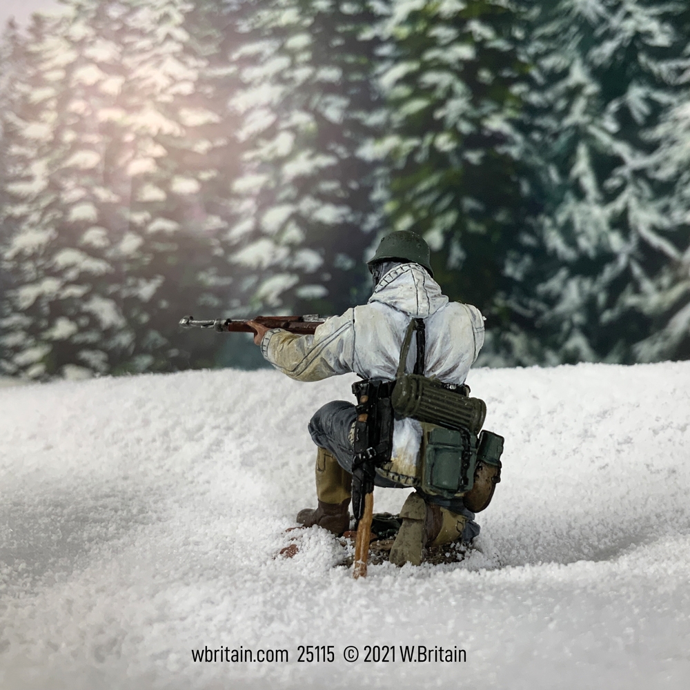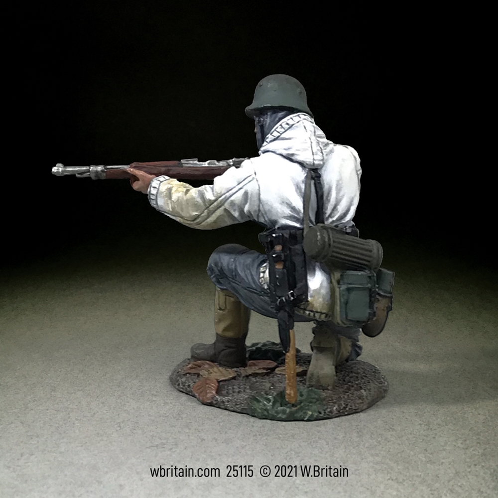 • German Grenadier Kneeling Firing K98, 1942-45• WWII• Matte finish• 56/58mm hand painted die-cast figure from W. Britain