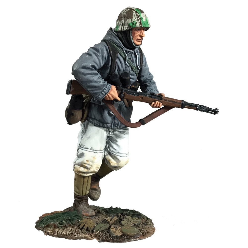 • German Volksgrenadier in Parka Running with K-98 No.1• WWII Collection• Matte finish• 56/58mm hand painted die-cast figure from W. Britain