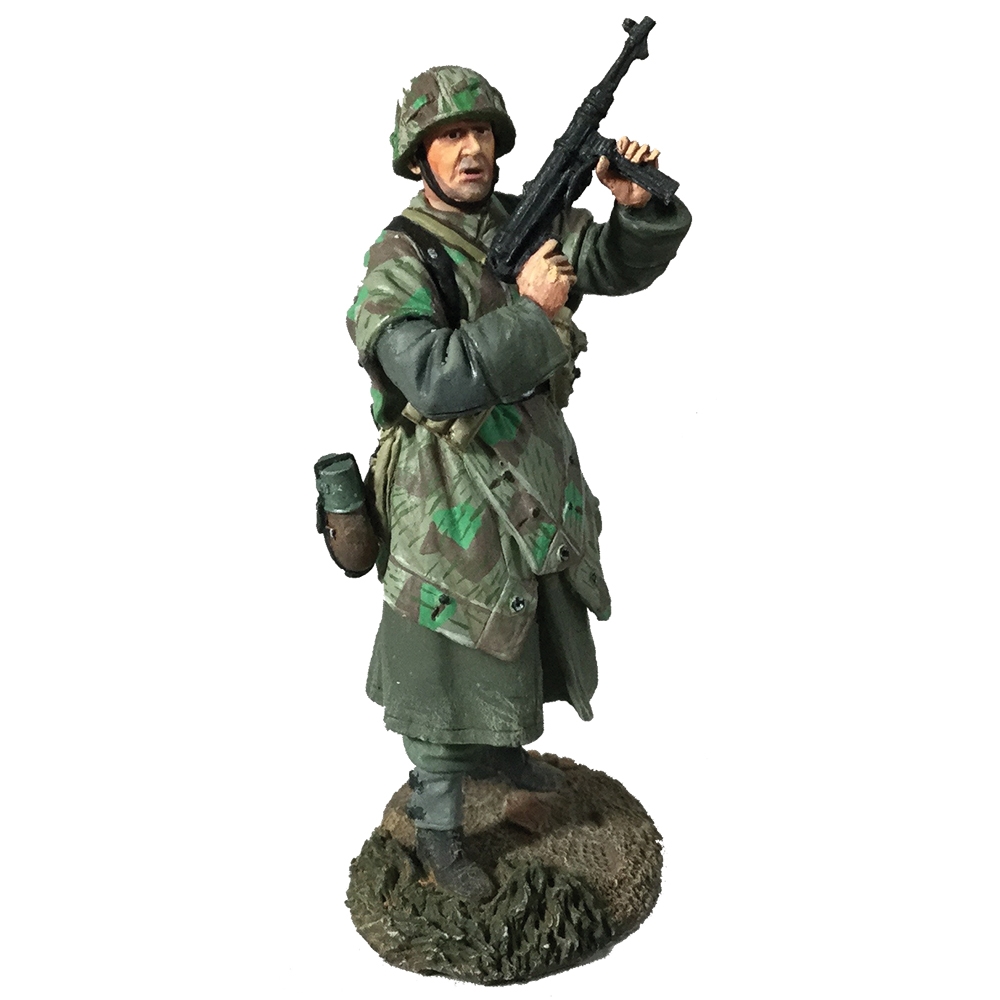 • German Volksgrenadier Standing in Zeltbahn• WWII Collection• Matte finish• 56/58mm hand painted die-cast figure from W. Britain