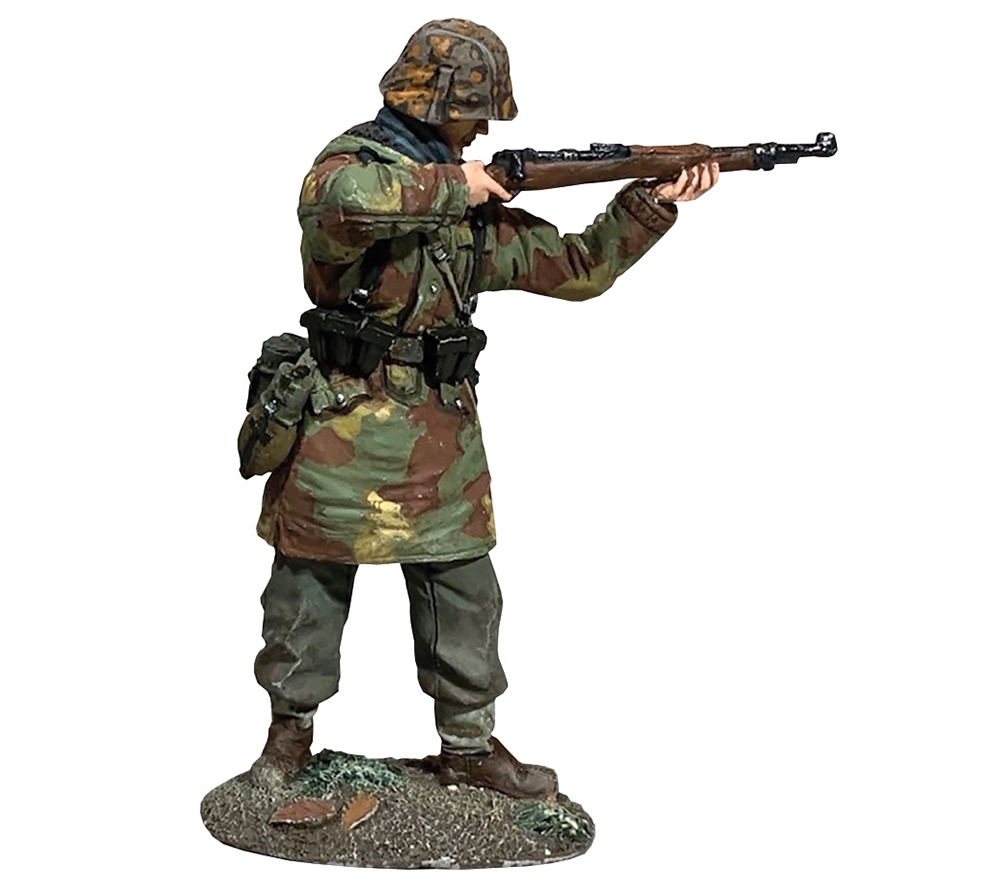 • German Waffen SS in Italian Camo Standing Firing K-98• WWII Collection• Matte finish• 56/58mm hand painted die-cast figure from W Britain