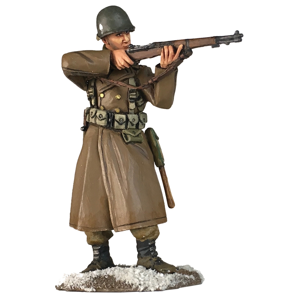 • US 101st Airborne in Greatcoat Firing M1 Garand Winter 44-45• WWII Collection• Matte finish• 56/58mm hand painted die-cast figure from W. Britain