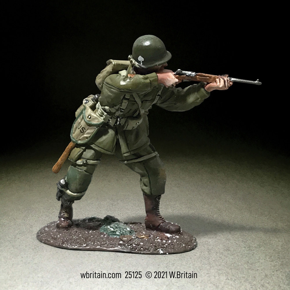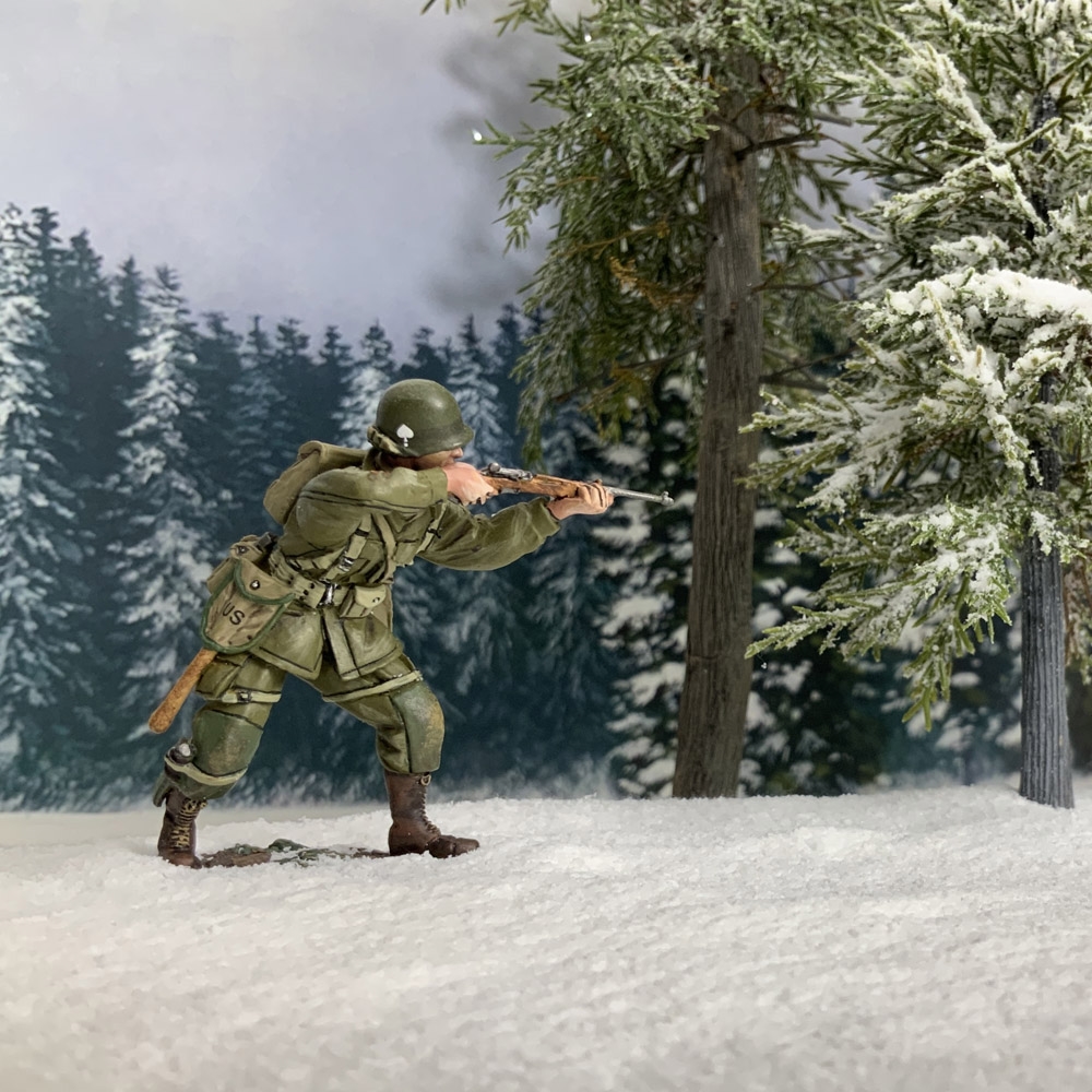 • U.S. 101st Airborne Standing Firing Carbine Winter 1944-45• WWII• Matte finish• 56/58mm hand painted die-cast figure from W. Britain