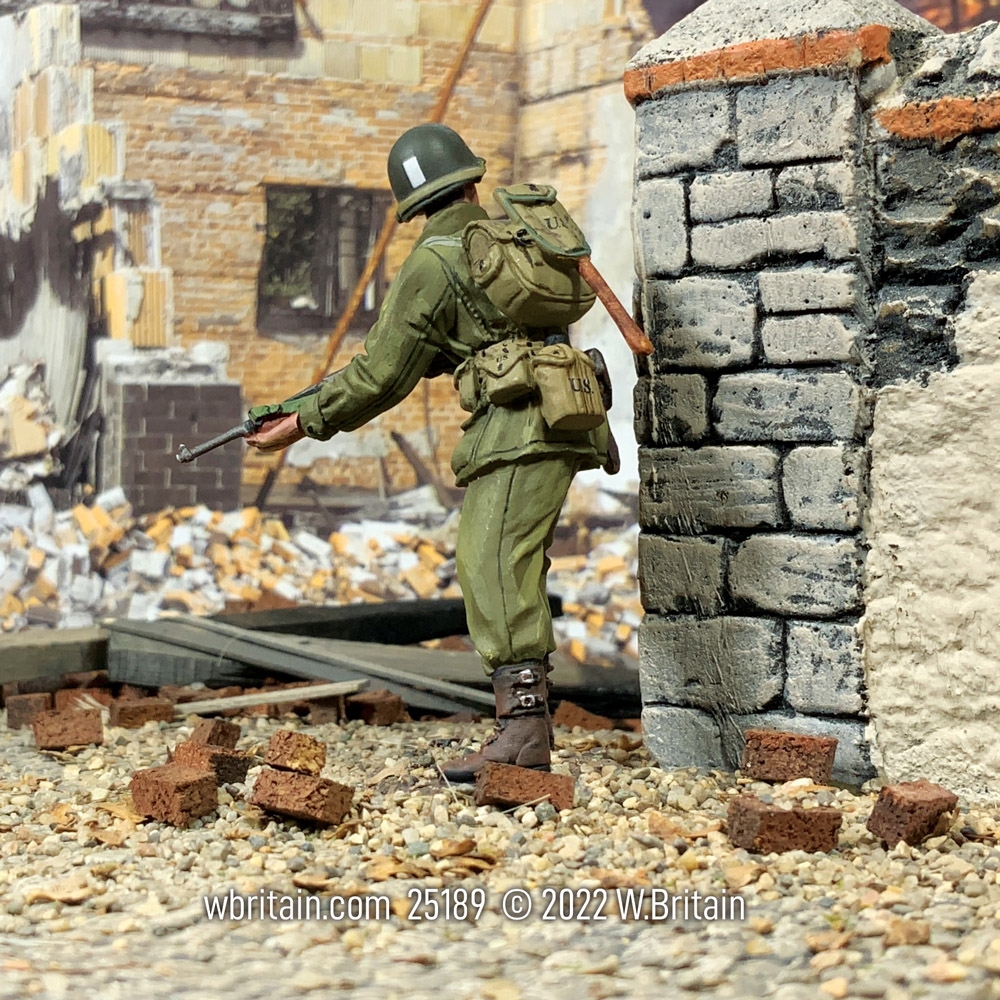 U.S. Infantry Company Officer Looking Around Corner, 1943-45.