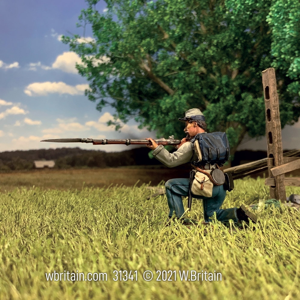 Confederate Infantry Kneeling Firing No.2 - Single figure in boxB31341 Confederate Infantry Kneeling Firing No.2B31341 detail 1B31341 detail 2
