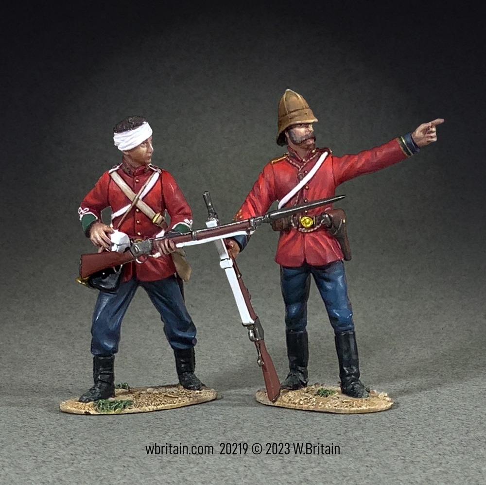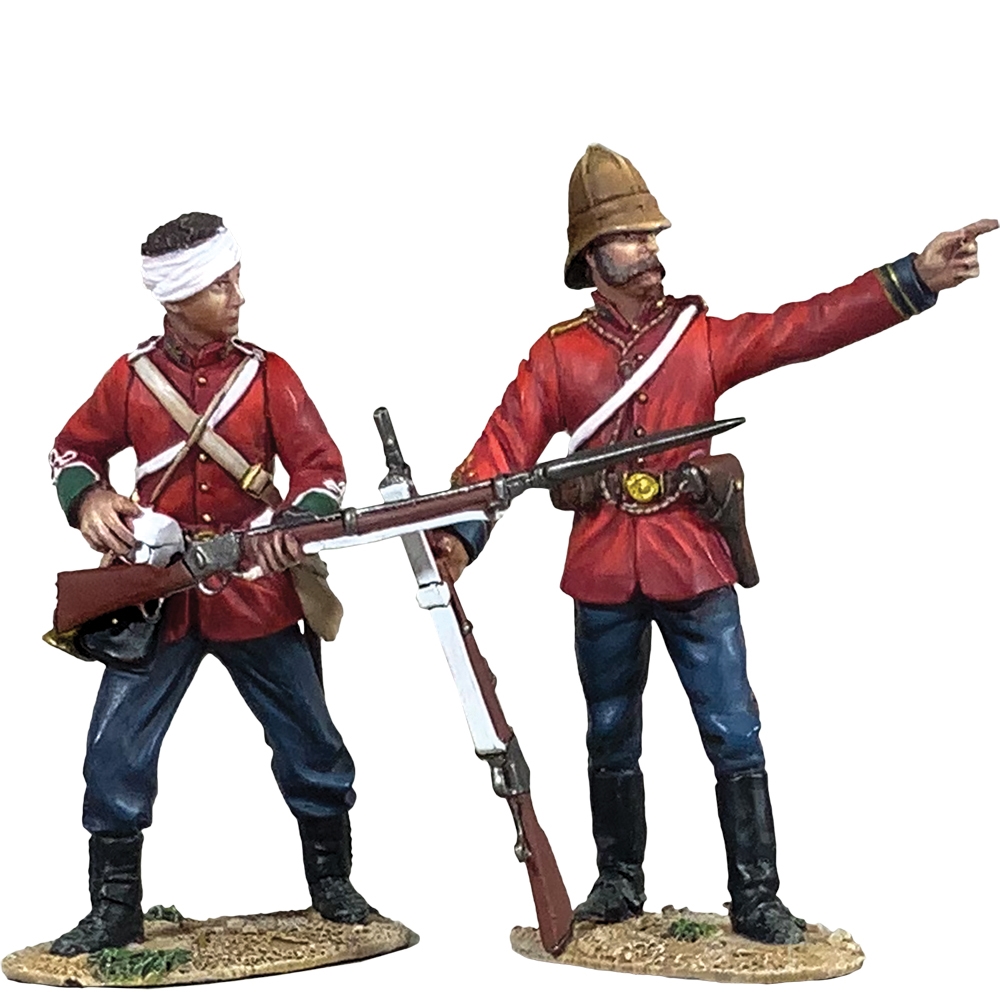 After a British defeat at the day-long Battle of Isandlwana, 22 January 1879, the attack on the Mission Station at Rorke’s Drift began that afternoon. Of the handful of junior officers at the Drift, only lieutenants John Chard and Gonville Bromhead were qualified for a front-line command. Bromhead had more combat experience and was senior by three years of service. Throughout the battle both Chard and Bromhead were aware of the need to be conspicuous to encourage their men, despite the obvious risks. When a series of Zulu attacks drove the defenders back from the barricades in front of the hospital, Bromhead gathered a flying column and made a bayonet charge driving the Zulus out. Chard and Bromhead were among the 11 members of the garrison to be awarded the Victoria Cross.