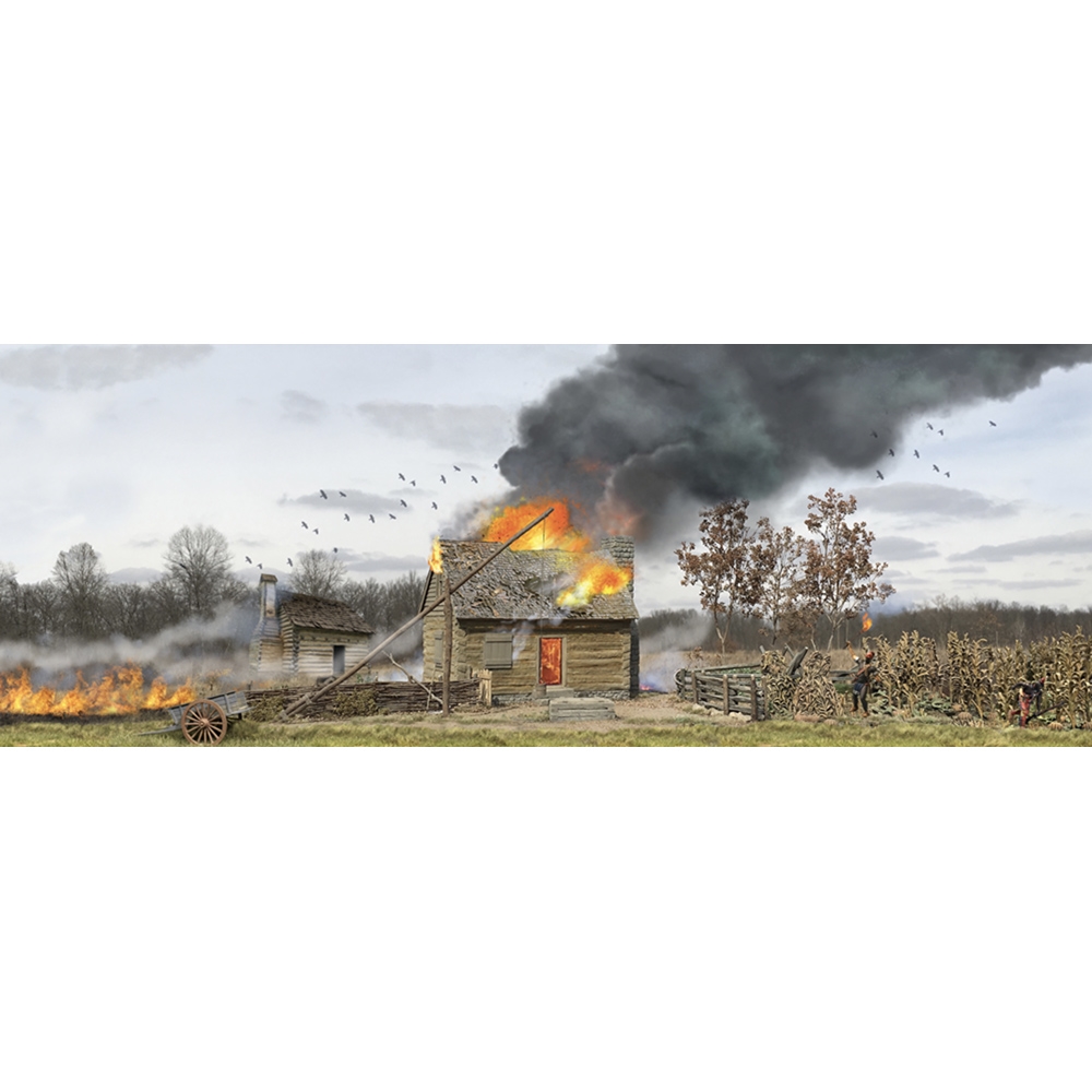 The Frontier Ablaze - Burning Cabin Scenic Backdrop 31" x 13"