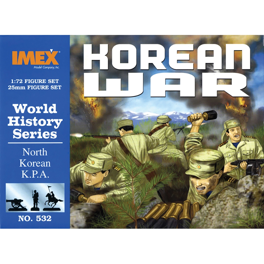 • 1:72 scale unpainted plastic figure set from Imex• Contents: 53 figures in assorted poses• Korean War