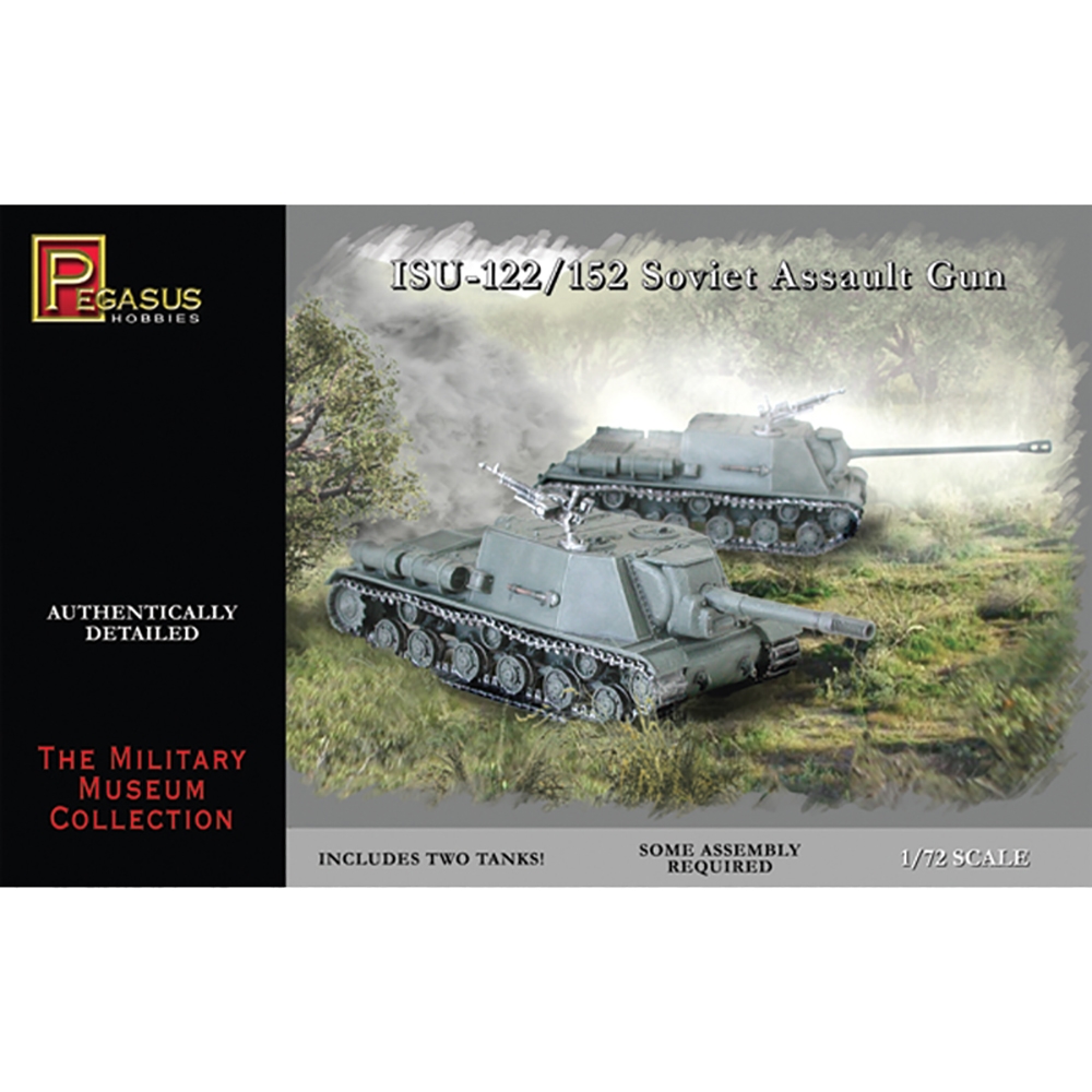 • ISU-122/152• 1:72 scale plastic model kit from Pegasus, requires paint and glue• Contents: 2 tanks