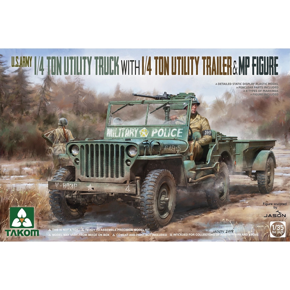 U.S. Army ¼ton Utility Truck with ¼ton Utility Trailer + MP Figure.Iconic WWII army vehicle.