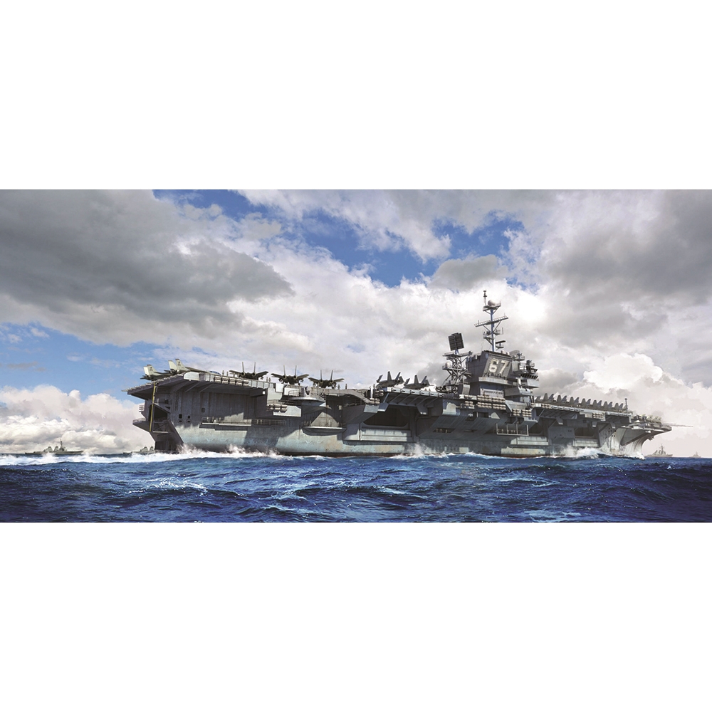 • 34 sprues + single-piece hull, detailed flight & hangar decks, Aircraft Wing includes E2C, EA-6B, HH-60H, S-3B, F/A-18C, F-14D