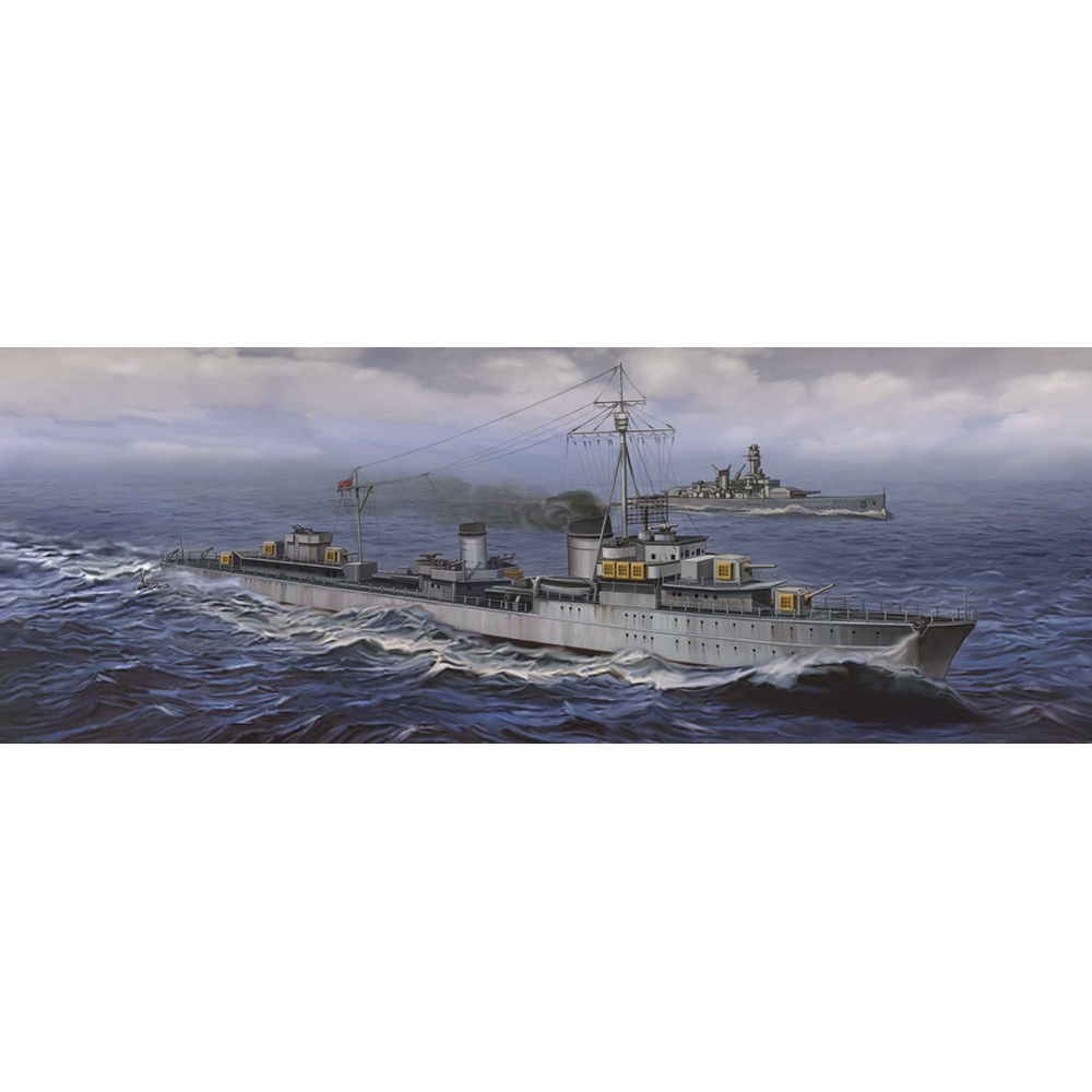 Narvik Class Destroyer. L: 182mm, W: 17.2mm, Waterline plate. 1:700 scale plastic model kit from Trumpeter, requires paint and glue.