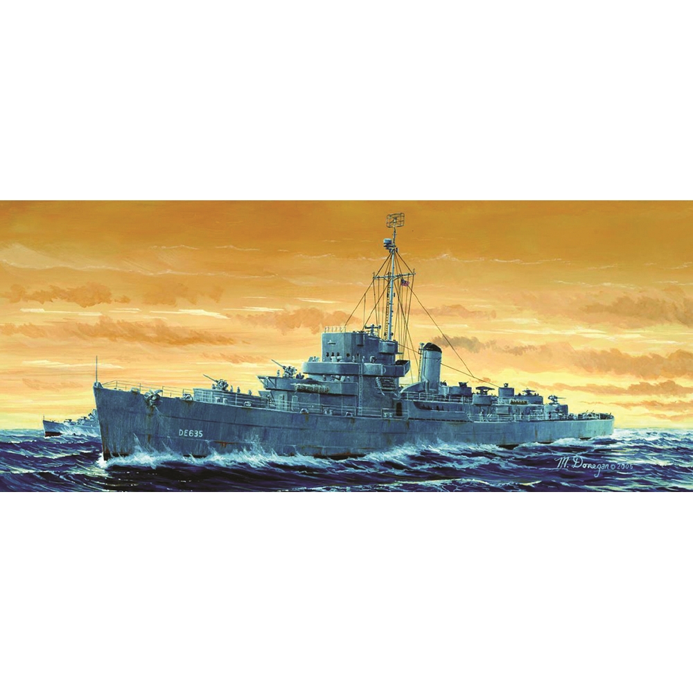 • Buckley Class Destroyer Escort • L: 266.4mm, W: 32mm, Waterline plate • 1:350 scale plastic model kit from Trumpeter, requires paint and glue