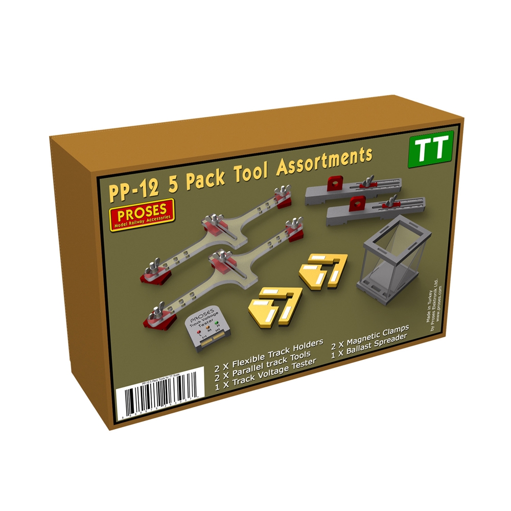 Pack includes -• Ballast Spreader• Parallel Track Tools• Flexible Track Tool• Track Voltage Tester• Snap & Glue Magnetic Clamps