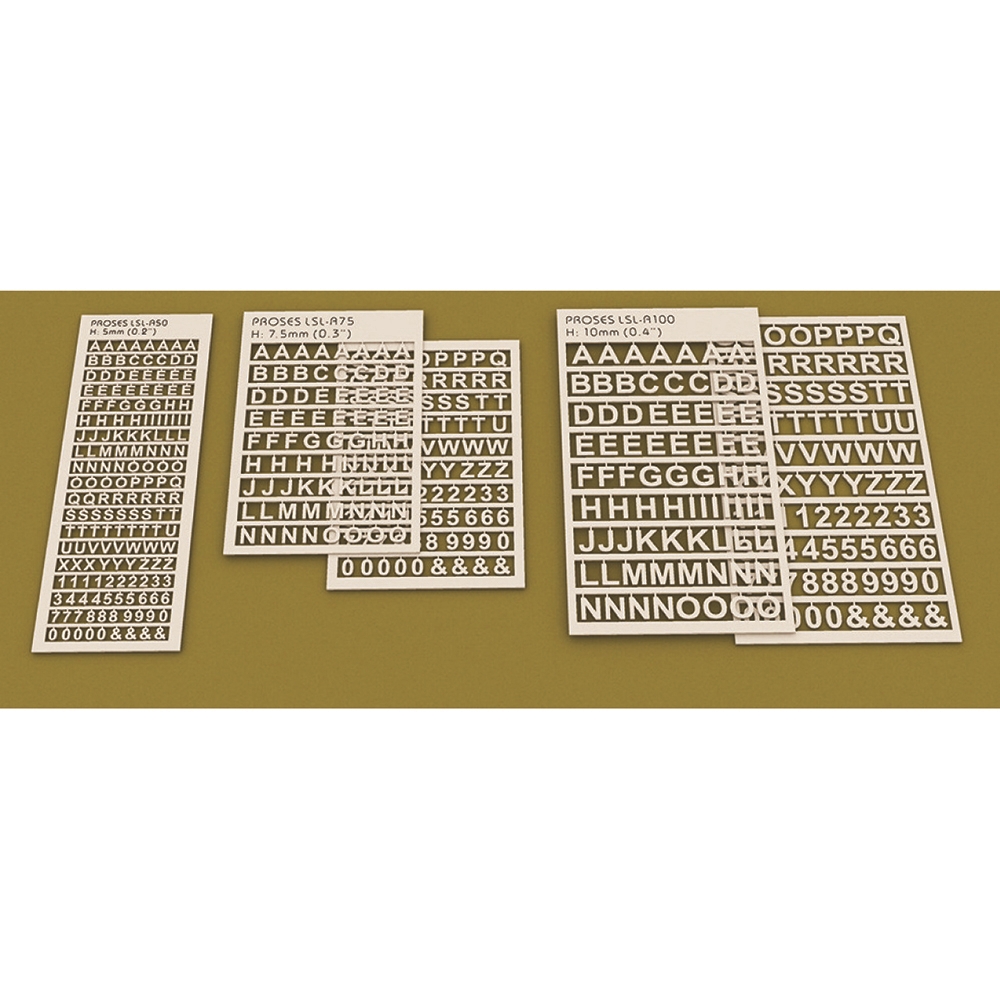 Laser-cut letters for your buildings, advertisements on roofs, etc. for all scales. 1 Set includes more than 160 letters and numbers. Height: 7.5mm.