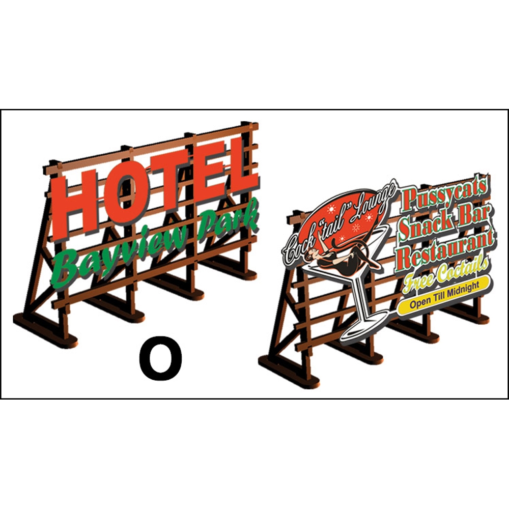 O Scale Laser-cut kit 2 X Billboards No: 3 Pussycats + Hotel Bayview.