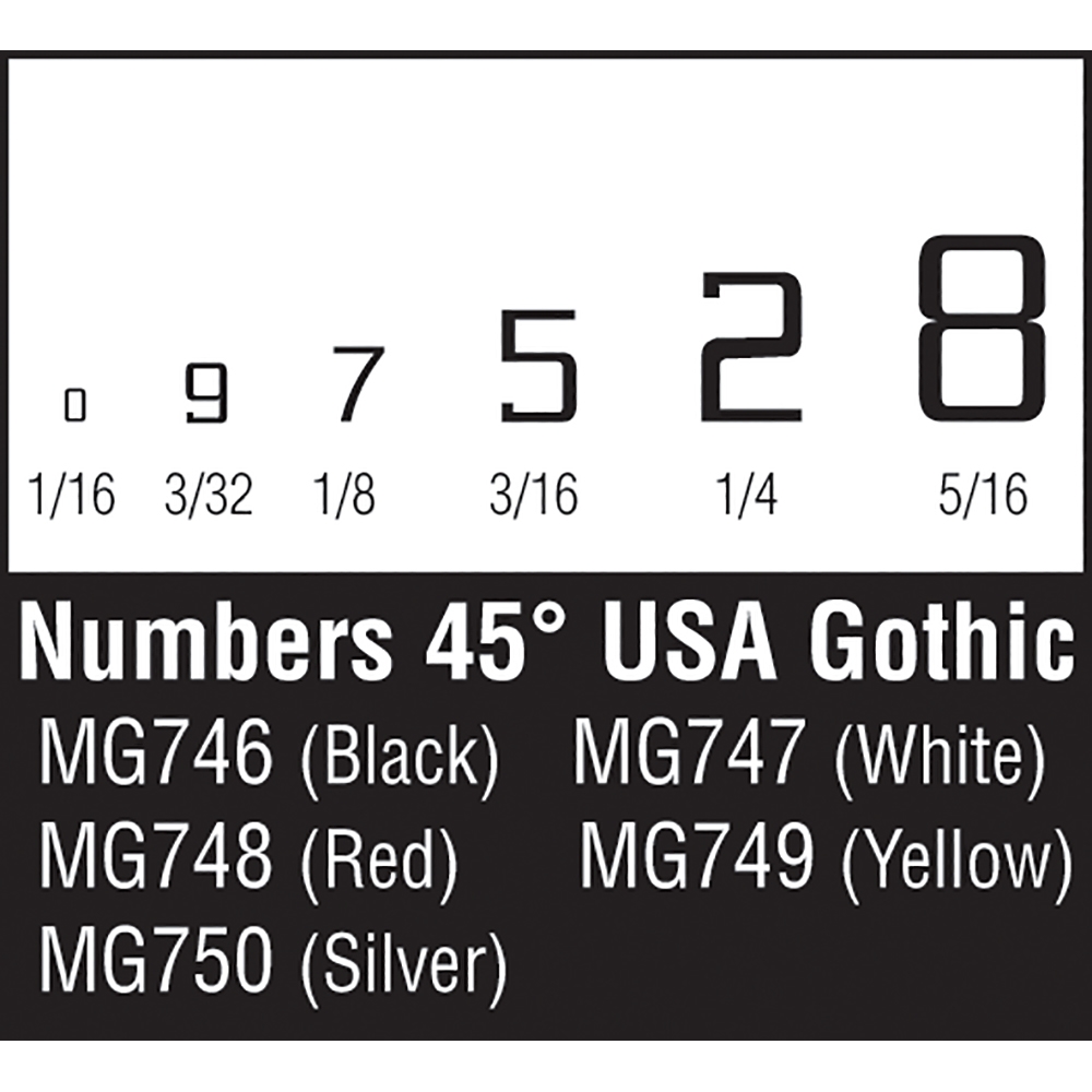 Number sizes: 1/16", 3/32", 1/8", 3/16", 1/4", 5/16" (1.58 mm, 2.38 mm, 3.17 mm, 4.76 mm, 6.35 mm, 7.93 mm).