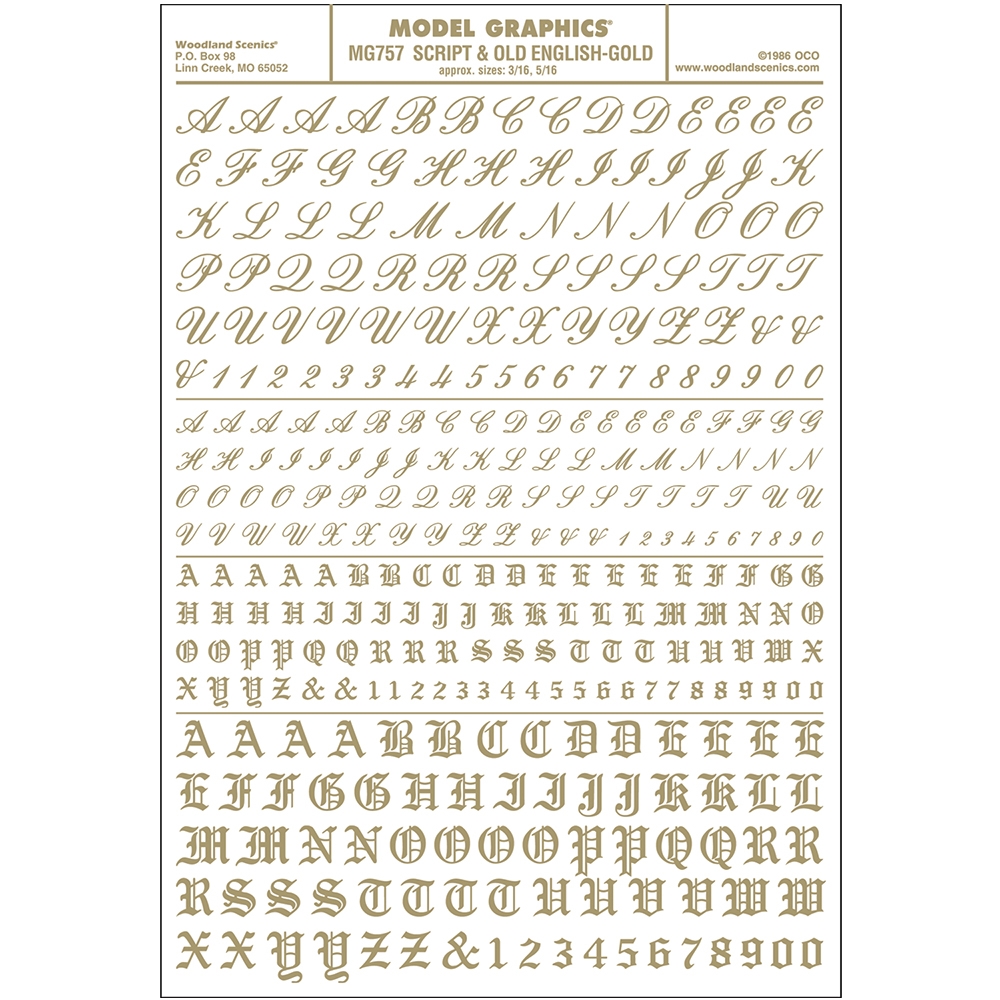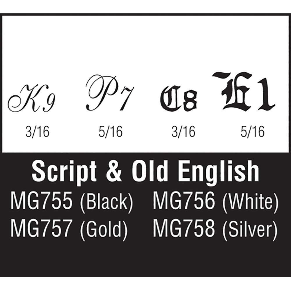 Script Letter sizes: 3/16" and 5/16" (4.76 and 7.93 mm).