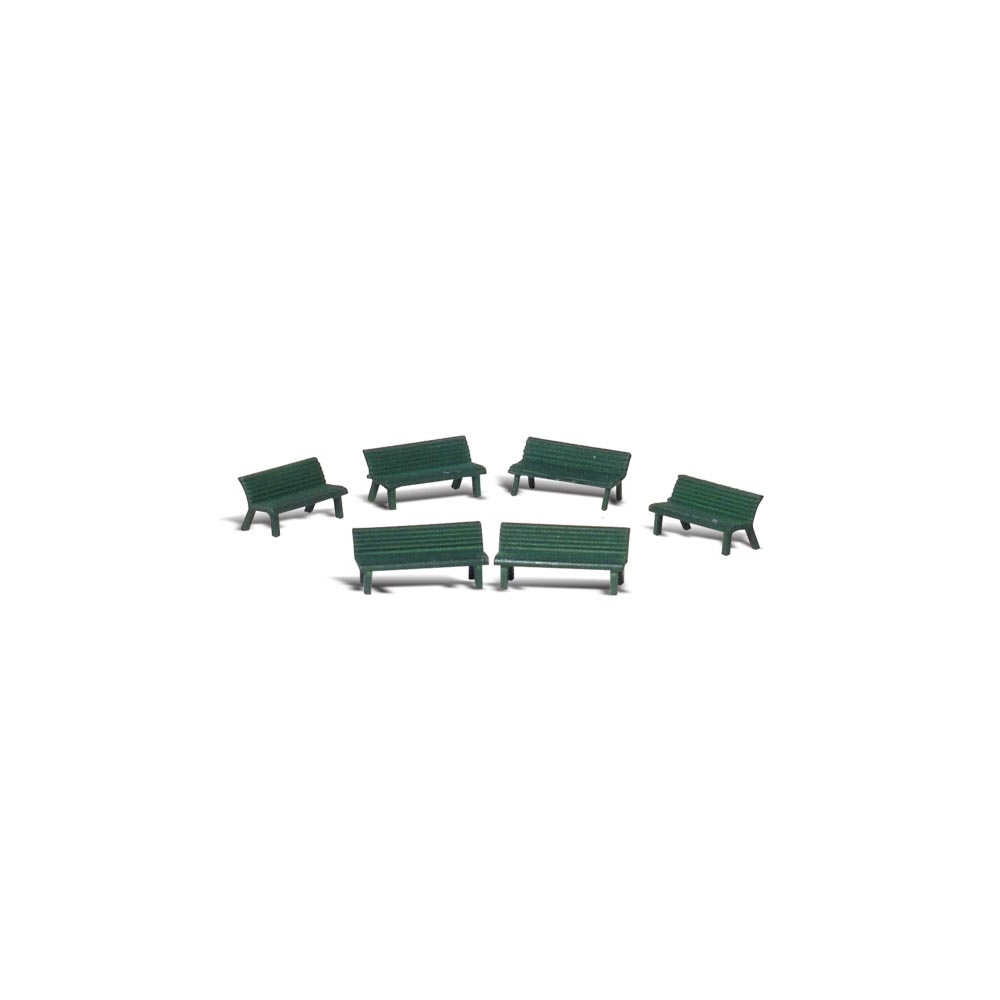 A set of green park benches. Set contains 6 pieces. Colors may vary from actual product.