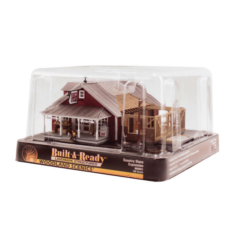 Business is booming on your layout with this Built-&-Ready® structure. The local country store is expanding and construction of its addition is well underway and there are tons of details to tell the story. Details include weathered clapboard siding, a metal roof, screen doors, an ice machine, signage, a staircase to the upper floor and more! See photos for footprint. Colors may vary from actual product.