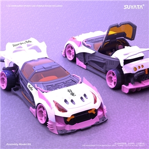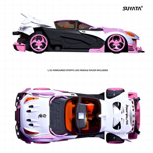 Armoured sports car with female racer “NaNa”.• Pre‐coloured parts: painting not required• Glue required• L: 15.5cm• 125 parts• 1:32 scale plastic model kit from Suyata