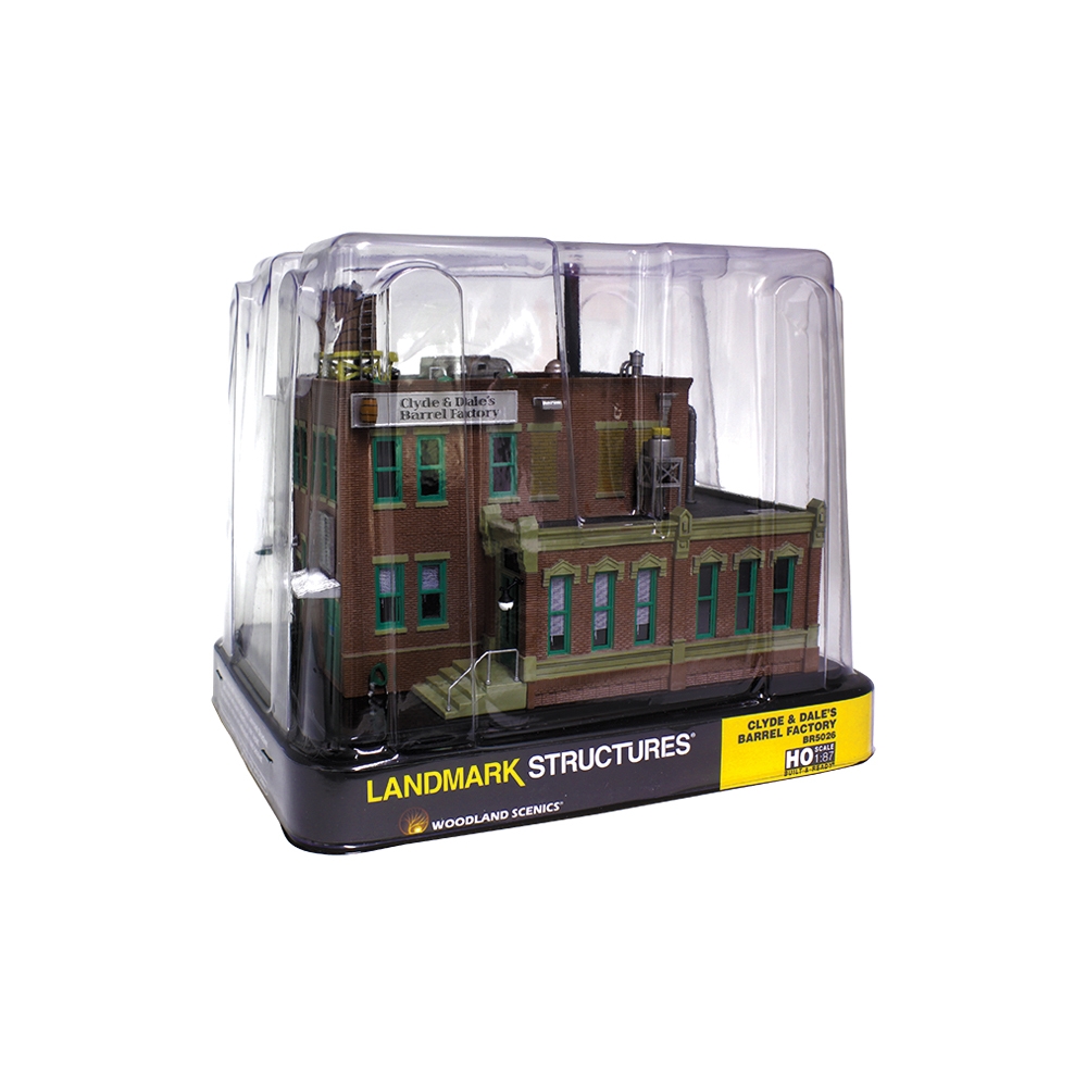 This old beer barrel factory looks great with its definitive architectural design and weathered look. Individually crafted details like the propane tank, dock-high loading areas, exhaust vents and ladders add an industrial feel. The water tower adds the romance of “yesteryear,” when factories had their own water towers for operations. Building includes one interior LED Light on the first floor and a printed interior. See photos for footprint. The installed LED lighting is made for use with the Just Plug® Lighting System. 25mA RoHS Compliant. Colors may vary from actual product.