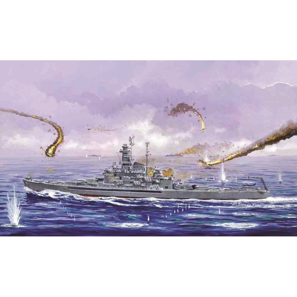 South Dakota Class Battleship. L: 297.1mm, W: 48.4mm, Waterline plate. 1:700 scale plastic model kit from Trumpeter, requires paint and glue.