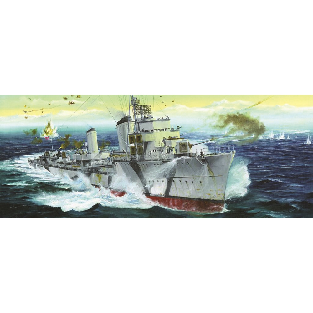 Narvik Class Destroyer. L: 182mm, W: 17.2mm, Waterline plate. 1:700 scale plastic model kit from Trumpeter, requires paint and glue.