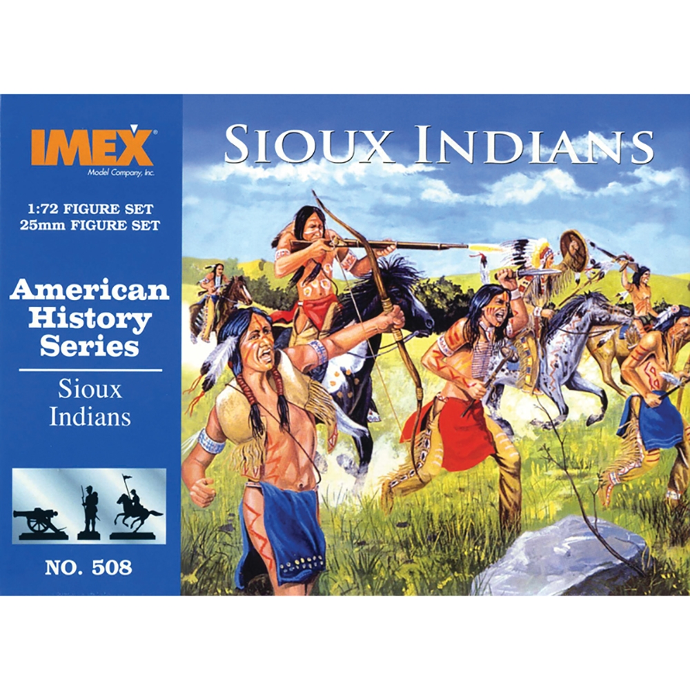 • 1:72 scale unpainted plastic figure set from Imex• Contents: 17 figures, 11 horses, 11 riders• Sioux Indians